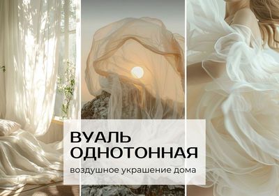 Описание Слово «вуаль» по-французски означает «пелена» или «завеса». Современная вуаль — тонкое гардинное полотно с блеском и высокой драпируемостью, пригодное для пошива свагов, жабо, воланов и других деталей ламбрекенов. Шторы из вуали имеют различную гамму цветов, хотя традиционно отдается предпочтение мягким нежным пастельным тонам. Эти занавеси способны создать нежную и воздушную атмосферу в интерьере и являются отличнейшим украшением окон. Они будут одинаково хороши сами по себе и в сочетании с легкими или плотными портьерами. К положительным характеристикам вуали можно отнести: не пропускает пыль и хорошо рассеивает слишком яркий, поникающий извне солнечный свет; не препятствует свободному проникновению воздуха; практична, ее не сложно кроить, единственное, обрезанные края предстоит обрабатывать косой бейкой или тесьмой; легко очищается и отстирывается; при правильном уходе может очень долгое время сохранять невероятно привлекательный внешний вид. Ткань Вуаль превосходно защитит дом от чересчур ярких лучей солнца, сквозняков и пыли, превратит интерьер вашего жилища в самое настоящее произведение стильного дизайнерского искусства.