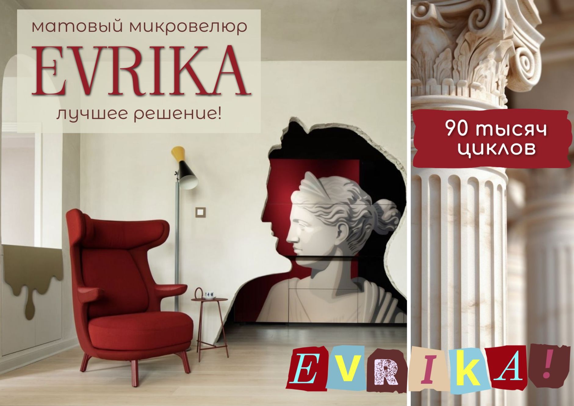 Простые решения не всегда лежат на поверхности. Иногда приходится сделать настоящее открытие, чтобы другие люди смогли воспользоваться им для своих целей. Такое, как наша новая коллекция матового микровелюра EVRIKA. Казалось бы, ничего сверхъестественного - универсальный мебельный материал с мягкой матовой фактурой и легким эффектом "мятой бумаги" на поверхности, лаконичная колор-карта в природных и трендовых оттенках (мы выбрали самые популярные оттенки серого, бежевого, благородные оттенки хвои, ночного неба, теплый терракотовый и яркий горчичный) и, конечно, EVRIKA - это приятные тактильные ощущения без пальчикового эффекта.